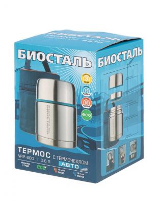 Термос для еды, нержавеющая сталь, 0.6 л, широкая горловина, Biostal, Авто, колба нержавеющая сталь, NRP-600