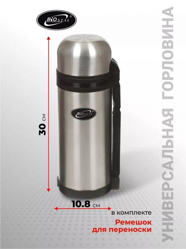 Чем отличается этот термос для еды от аналогов? В отличие от пластиковых контейнеров и недорогих моделей с узким горлом, Biostal обеспечивает полную герметичность и сохраняет свежесть продуктов без протеканий. Как использовать термос для еды? Просто налейте горячее или холодное блюдо, плотно закрутите крышку с навинчивающимся механизмом и возьмите с собой — удобная ручка и ремешок делают транспортировку максимально комфортной. Подходит ли для супа? Да, благодаря широкой горловине и объему 1.5 литра вы легко разместите как жидкие, так и плотные блюда.