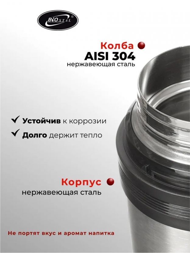 Термос для еды, нержавеющая сталь, 1.8 л, универсальная горловина, Biostal, колба нержавеющая сталь, NG-1800-1