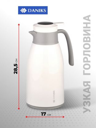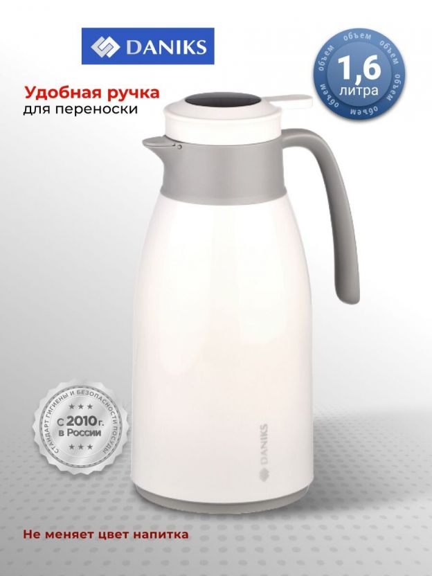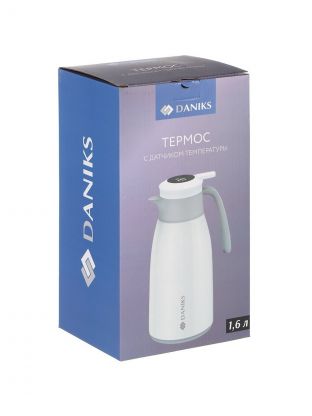 Термос-кувшин пластик, 1.6 л, Daniks, колба стекло, с датчиком, белый, ED-160-white