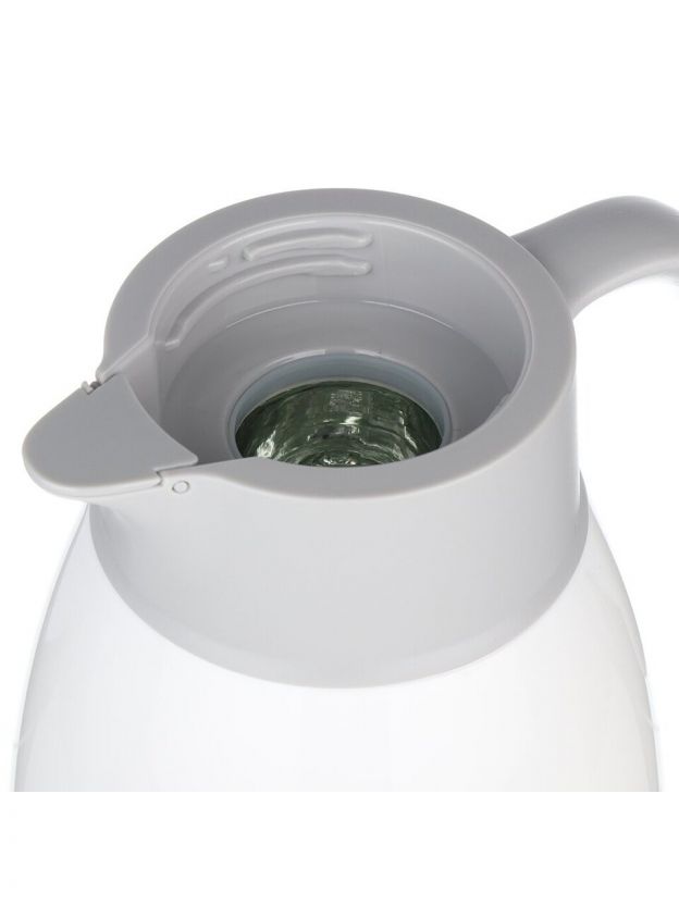Объём термоса составляет 1.6 литра, корпус выполнен из пластика, а колба — из стекла. Это гарантирует сохранение вкуса и безопасность использования.