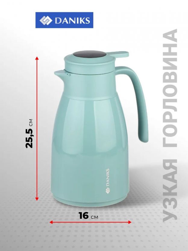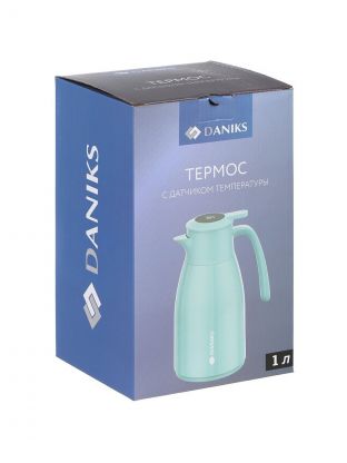 Daniks ED-100-blue с объёмом 1 литр, стеклянной колбой и датчиком температуры — оптимальный вариант для хранения чая, кофе или компота дома, на даче, в офисе или в дороге.