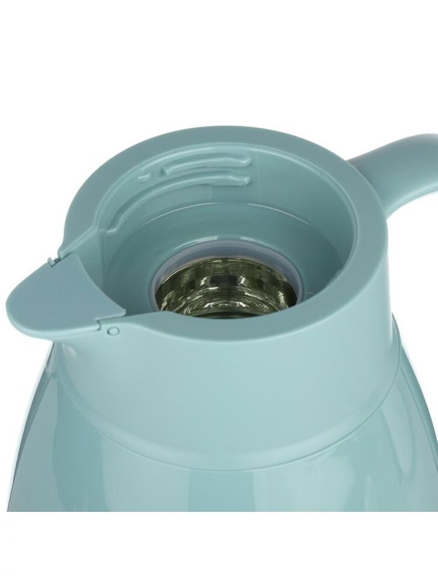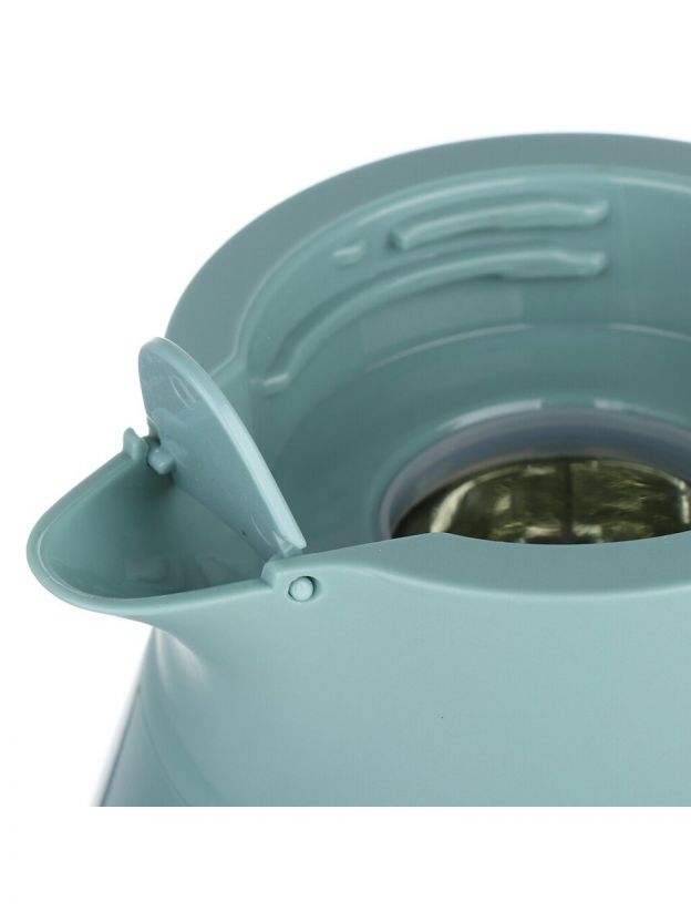 - Прочный пластиковый корпус, стеклянная колба, объём 1 л, высота 25,5 см — оптимально для семьи или компании.