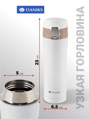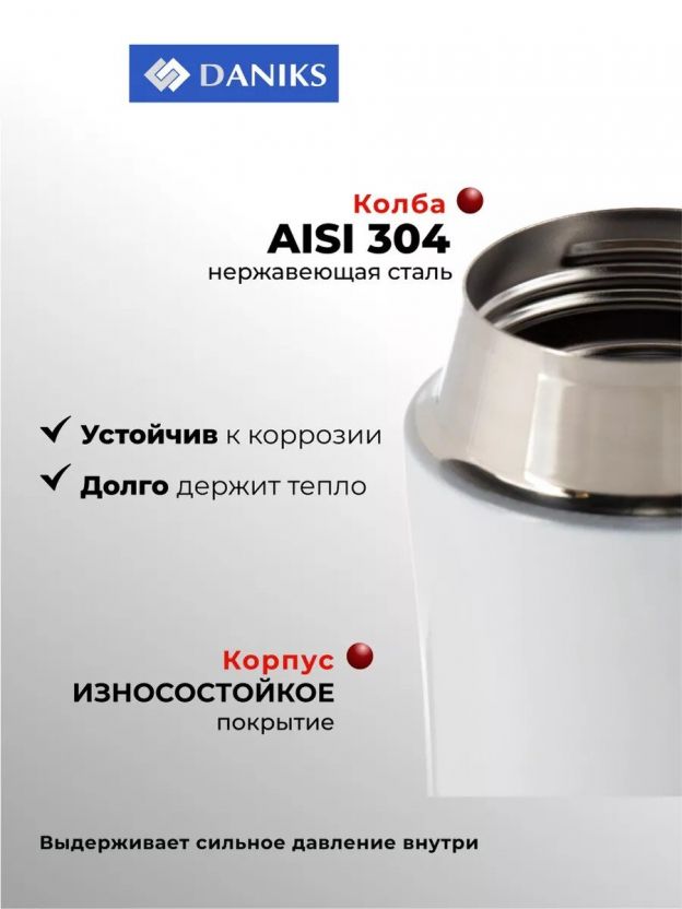 Если вы ищете, какой термос лучше выбрать для кофе или чая на работу, обратите внимание на этот вариант: он сочетает прочность, удобство и стильный белый дизайн с рисунком. В отличие от моделей с широкой горловиной, узкая конструкция минимизирует теплопотери и облегчает питьё на ходу. Термос Daniks не впитывает запахи, его легко мыть, а гарантия производителя — 12 месяцев — подтверждает надёжность. Подходит ли для автомобиля или подарка? Да, благодаря универсальному объёму и лаконичному оформлению, это отличный выбор для разных сценариев использования.