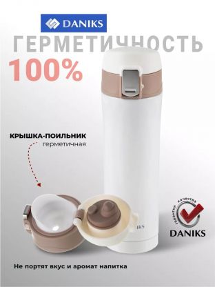 Термос нержавеющая сталь, 0.4 л, узкая горловина, Daniks, колба нержавеющая сталь, T03-400-wht