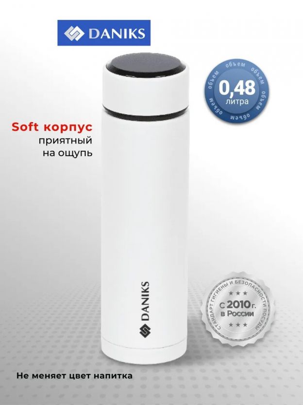 Термос нержавеющая сталь, 0.48 л, Daniks, колба нержавеющая сталь, с датчиком, белый, SL-155H-white soft