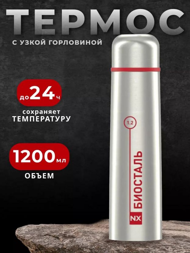 Термос нержавеющая сталь, 1.2 л, узкая горловина, Biostal, колба нержавеющая сталь, NX-1200
