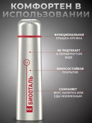 Если вы ищете, как выбрать термос для дачи или города, обратите внимание на ударопрочность и длительное сохранение температуры — этот термос сохраняет тепло и холод до 24 часов, что выгодно отличает его от аналогов с пластиковыми элементами. Навинчивающаяся крышка предотвращает протекание даже при активных перемещениях. Часто спрашивают, подходит ли Biostal NX-1200 для похода — да, благодаря прочности и объёму он идеально впишется в рюкзак или багажник автомобиля.