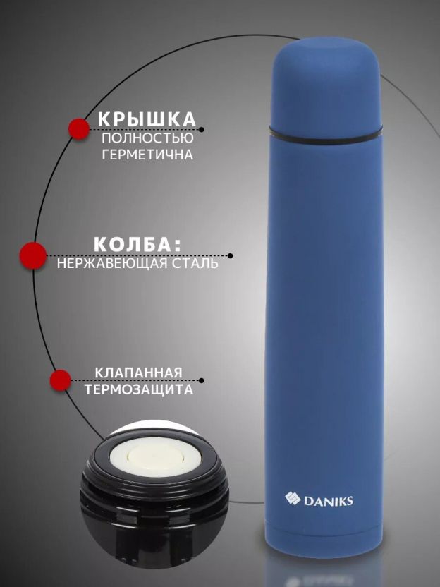 Если вы спрашиваете, чем отличается этот термос от обычных пластиковых моделей — он дольше держит тепло (до 24 часов), не впитывает запахи и не выделяет вредных веществ. Подходит ли для кофе, чая или холодных напитков? Да, благодаря универсальному объему и прочной конструкции, вы можете использовать его для любых напитков в походе, на работе или дома. Оформите заказ на термос Daniks прямо сейчас — получите надежного помощника для поездок и отдыха по выгодной цене с официальной гарантией.