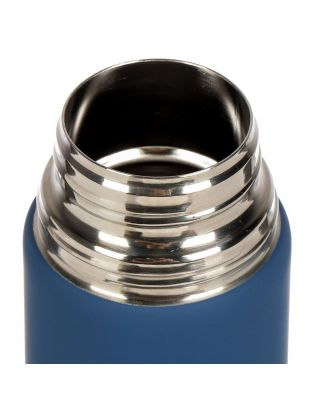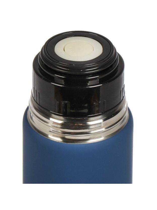 Объем — 1.2 л, диаметр горлышка — 5 см, материал корпуса и колбы — нержавеющая сталь, цвет — сапфирово-синий, крышка с клапаном, ударопрочный корпус.