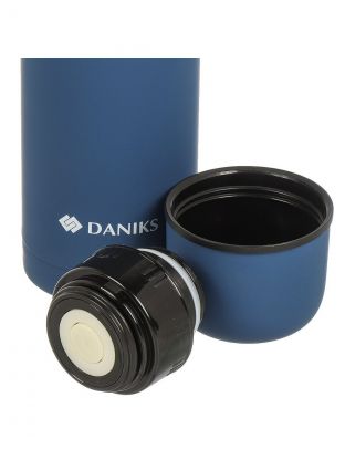 Термос Daniks 1.2 л сапфирово-синий — сохраняет напитки горячими или холодными до 24 часов, не проливается, подходит для путешествий и работы.