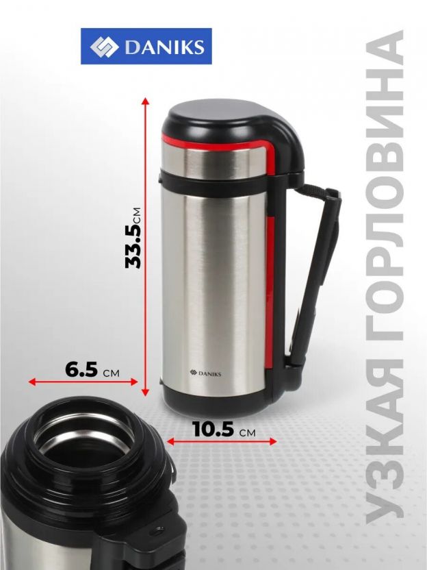 Термос Daniks SL-180GH 1.8 л из нержавеющей стали: сохраняет тепло и холод до 24 часов, универсальная горловина, удобно брать в город, спорт или на дачу.