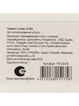 Термос нержавеющая сталь, 350 мл, Lucky, Y4-9319
