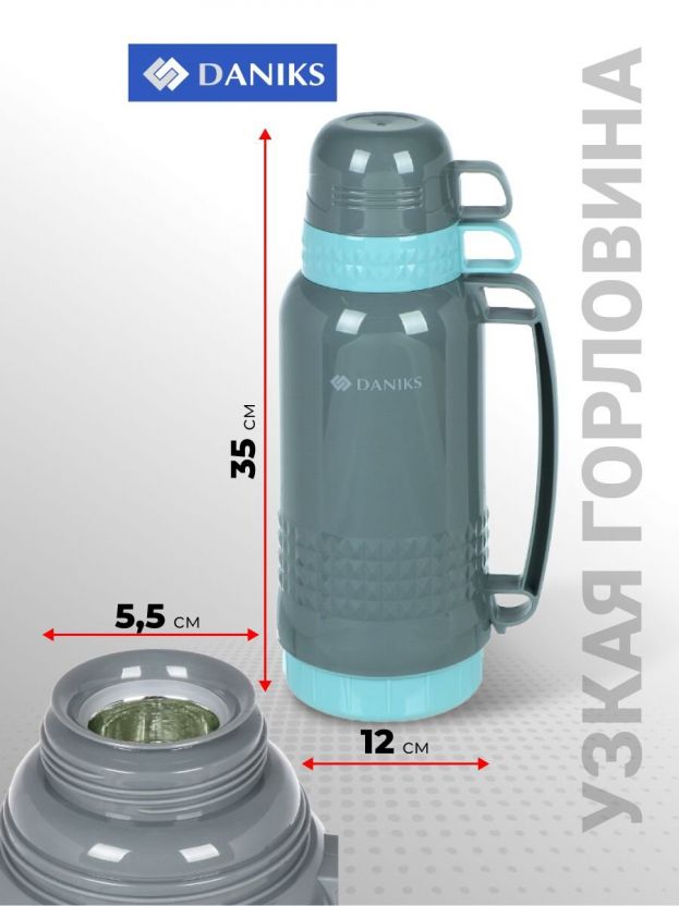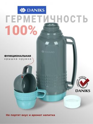 Термос Daniks CA-180 1.8 л: сохраняет тепло и холод до 24 часов, легкий пластиковый корпус и стеклянная колба для чистого вкуса напитков.