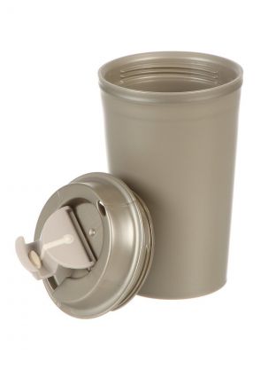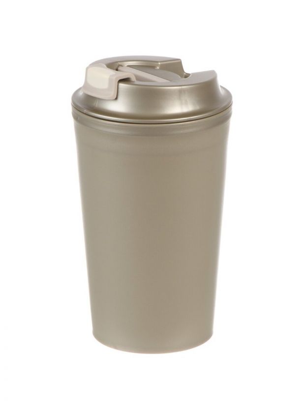 Термостакан пластик, 350 мл, Бытпласт, колба пластик, с клапаном, металлик бежевый, 434260042