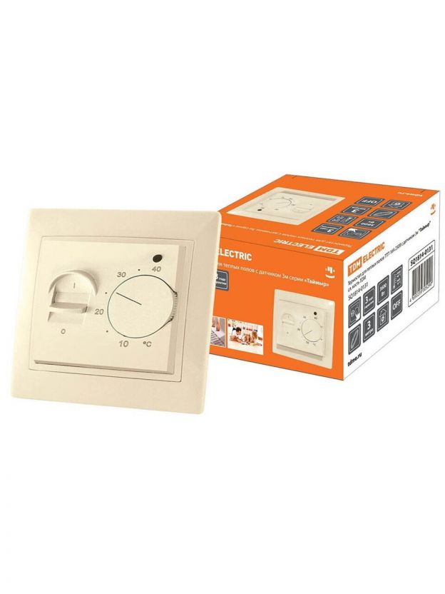 Термостат для теплых полов 250В, 16A, с датчиком, слоновая кость, 3 м, Таймыр, TDM Electric