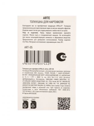 Толкушка для картофеля, нержавеющая сталь, 33.4х8 см, навеска, Apollo, Arte, ART-05