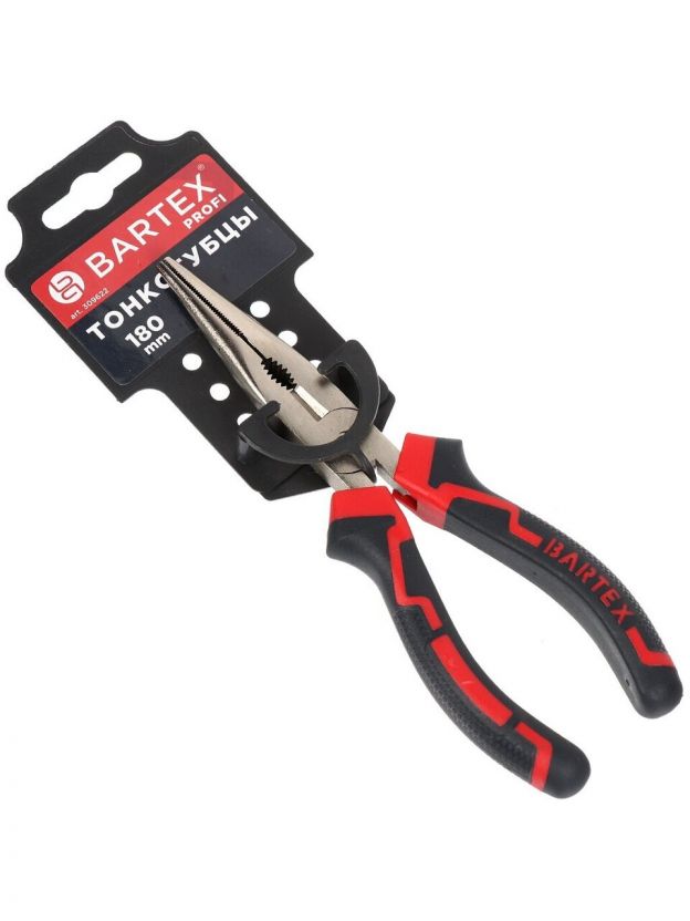 Тонкогубцы 180 мм, прямые, углеродистая сталь, Bartex, Профи, 909017.1222
