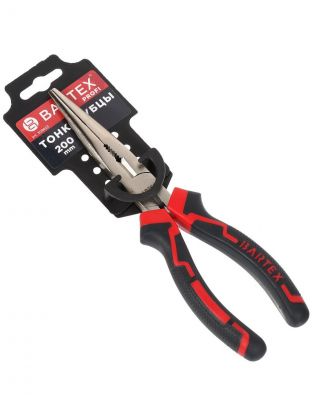 Тонкогубцы 200 мм, прямые, углеродистая сталь, Bartex, Профи, 909018.1222