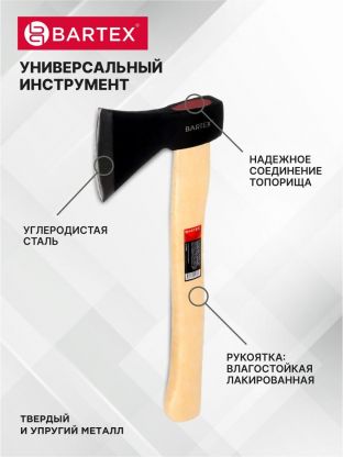 Главный функционал универсального топора – разрубание и обработка древесины. Модель Bartex B0346 состоит из качественной деревянной рукоятки, на которой жестко зафиксировано лезвие. Режущая кромка отличается износостойкостью и долго сохраняет остроту.