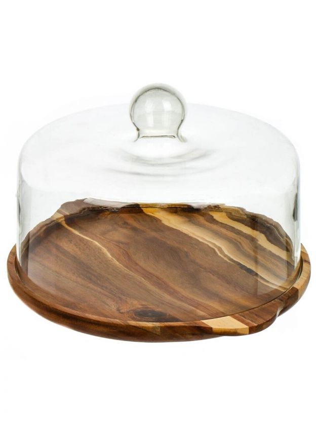 Тортница дерево, стекло, 2 предмета, 18.5х28 см, круглая, с крышкой, 32х28х18.5 см, Y4-6569