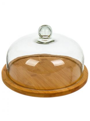 Тортница дерево, стекло, 2 предмета, 19х29 см, круглая, с крышкой, 29х29х19 см, Y4-6570
