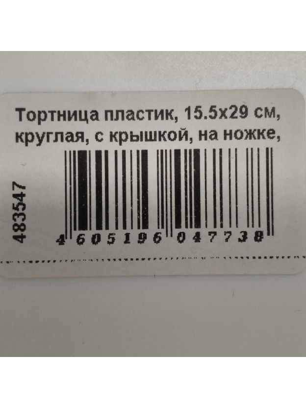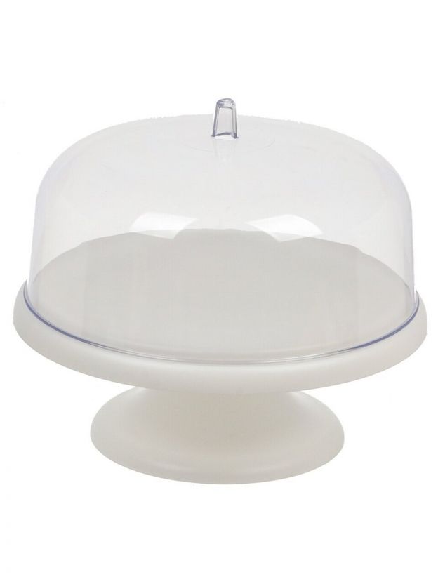 Тортница пластик, 15.5х29 см, круглая, с крышкой, на ножке, белая, Idea, М1119