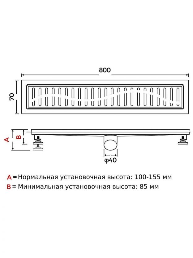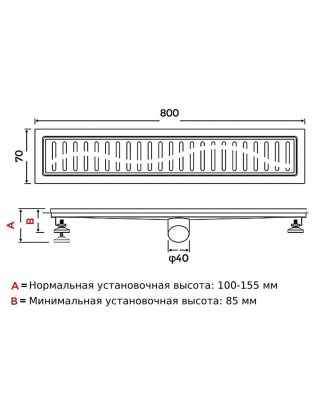Трап 40 мм, 800х70 мм, Gappo, нержавеющая сталь, G88007-36