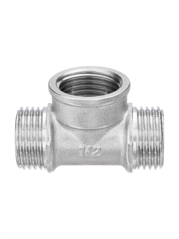 Тройник 1/2" AquaLink — надежное решение для водоснабжения и отопления: латунь, никелированное покрытие, универсальное подключение ш-г-ш для быстрой сборки без протечек.