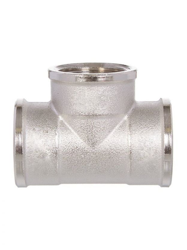 Тройник выполнен из латуни с никелевым покрытием, долговечного и надежного материала. Не подвержен коррозии и отложению известкового налета, что гарантирует долгое функционирование системы.