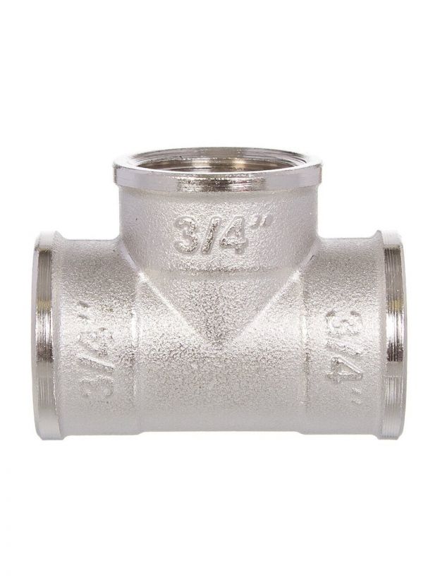 Тройник 3/4", г-г-г, никель, индивидуальная упаковка, РосТурПласт