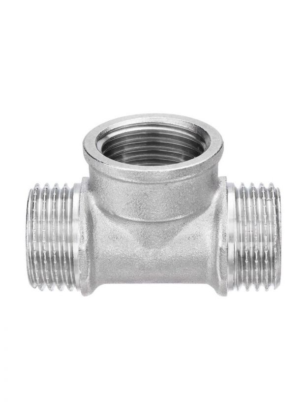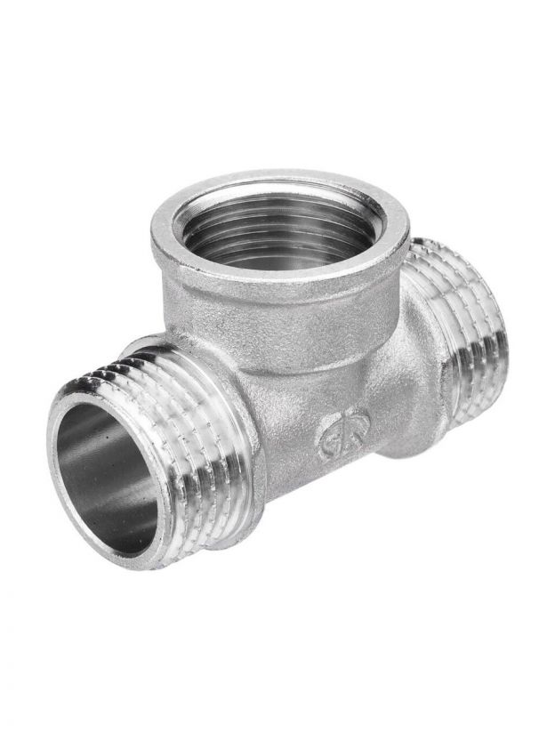 Тройник рассчитан на стандартное подключение 3/4 дюйма, что подходит для большинства бытовых трубопроводов. Резьба — внутренняя и наружная, тип соединения ш-г-ш.