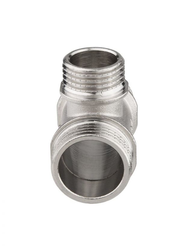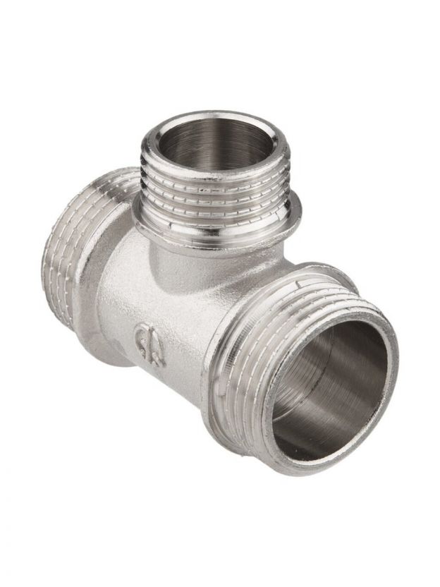 - Универсальный размер 3/4"x1/2"x3/4", наружная резьба (ш-ш-ш) — подходит для большинства бытовых и промышленных систем