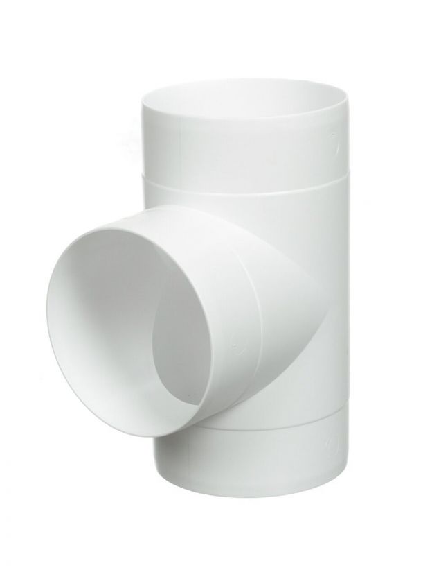 Тройник d125 – это неотъемлемая часть современных приточных и вытяжных вентиляционных систем, который способствует разветвлению или объединению воздуховодов в единую сеть. Данный тройник оснащен равными отверстиями диаметром 125 мм, размещенных под углом 90 градусов по отношению друг к другу. Деталь изготовлена из качественного ударопрочного пластика белого цвета.