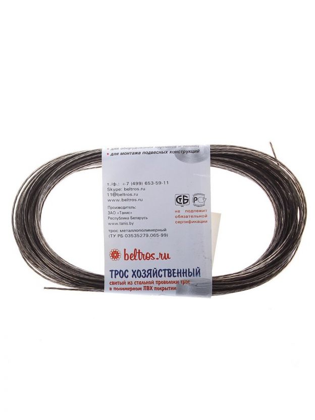 Хозяйственный трос в полимерной оболочке предназначен для использования в быту, а также в сфере садоводства, строительства, при перевозке грузов и т.д.