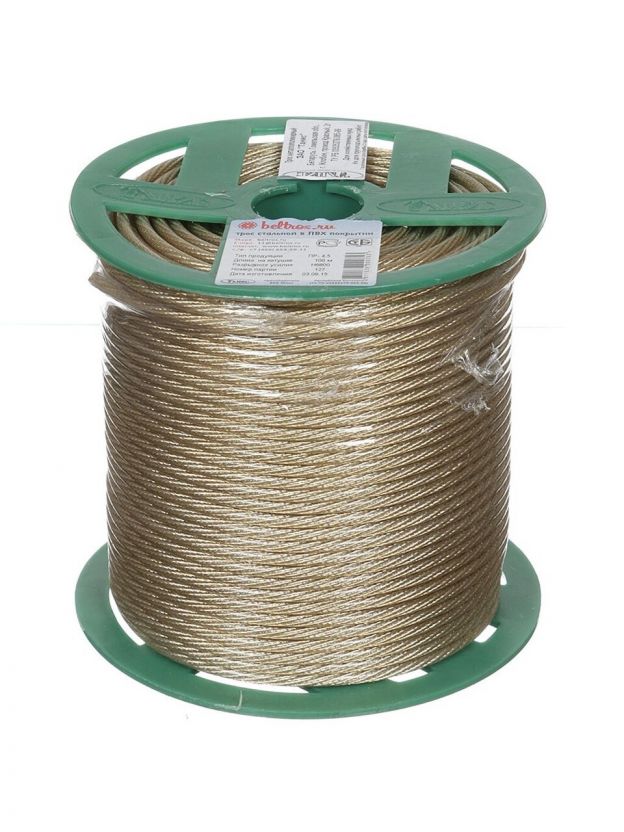 Изготовлены из металлической проволоки, покрытой ПВХ. Из 7 жил металлокорда свивается трос конструкции 6+1 (шесть прядей, свитых в один концентрический слой вокруг седьмой пряди-сердечника). Такая конструкция дает достаточно равномерное распределение нагрузки между жилами и стабильность показателя прочности на разрыв.