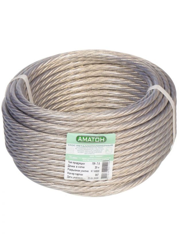 Изготовлены из металлической проволоки, покрытой ПВХ. Из 7 жил металлокорда свивается трос конструкции 6+1 (шесть прядей, свитых в один концентрический слой вокруг седьмой пряди-сердечника). Такая конструкция дает достаточно равномерное распределение нагрузки между жилами и стабильность показателя прочности на разрыв.