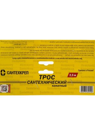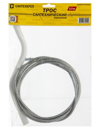 Трос сантехнический канализационный канатный, диаметр 6х2.5 м, СантехКреп, 3.1.1.1.