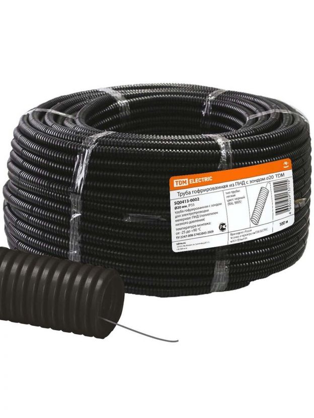 Труба ПНД, гофрированная, диаметр 20 мм, с протяжкой, 100 м, TDM Electric, SQ0413-0002