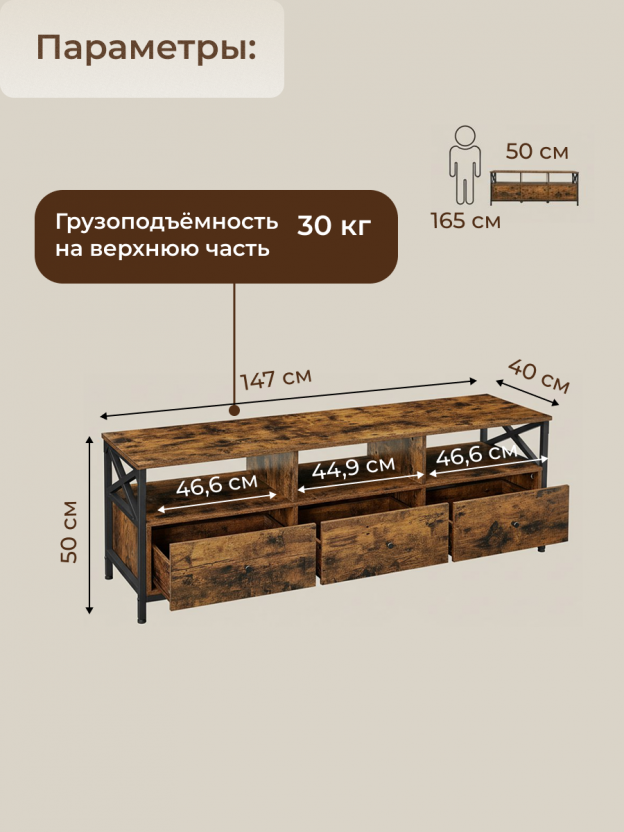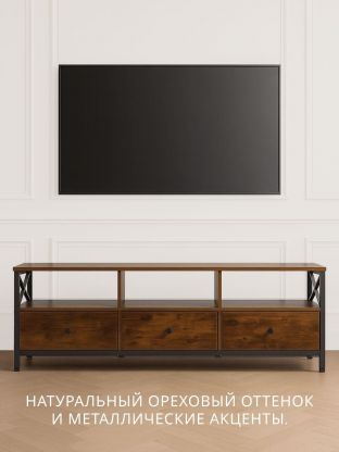 Тумба под телевизор 147х40х50 см, ДСП, ДВП, 30 кг, орех, Лофт, LTV301B01