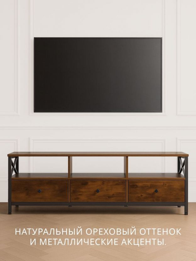 Создайте современный интерьер с элегантной тумбой под телевизор, выполненной в стиле лофт. Это идеальное решение для тех, кто ценит функциональность и стиль в своем доме. Тумба из ДСП и ДВП в изысканном ореховом цвете подчеркнет уникальность вашего интерьера и станет центральным элементом гостиной. Ее габариты 147х40х50 см позволяют разместить не только телевизор, но и разнообразные элементы декора, создавая уютную атмосферу.