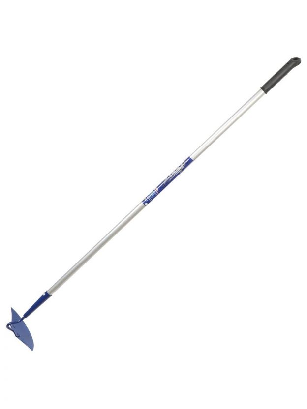 Лёгкий алюминиевый черенок для уменьшения веса изделия. Индукционные технологии теромообработки полотен для повышения прочности и износостойкости изделия. Пластиковые ручки на концах черенка для удобства работы и хранения. Стильный внешний вид. Рабочая часть из высококачественной стали с термообработкой в порошковой окраске. Ширина рабочей части - 230 мм.