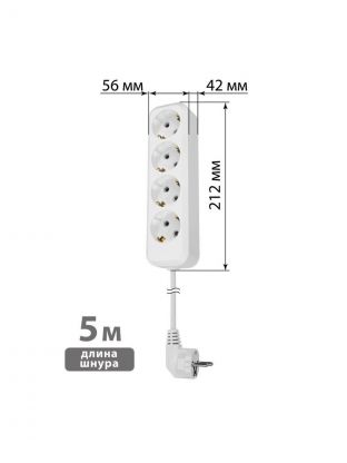 Удлинитель 4 гнезда, 5 м, с заземлением, 16 А, 3680 Вт, белый, TDM Electric, Народный УН3, SQ1303-14