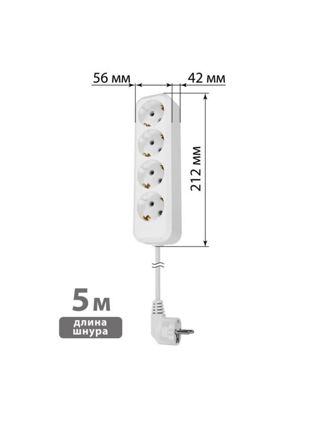 Удлинитель длиной 5 метров позволяет подключать устройства даже на значительном расстоянии от розетки. Это особенно удобно в больших помещениях, где стандартные провода не всегда достигают нужной длины. Белый цвет корпуса гармонично впишется в любой интерьер, не привлекая лишнего внимания.