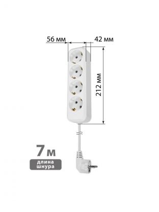 Удлинитель 4 гнезда, 7 м, с заземлением, 10 А, 2300 Вт, белый, TDM Electric, Народный, SQ1303-1048