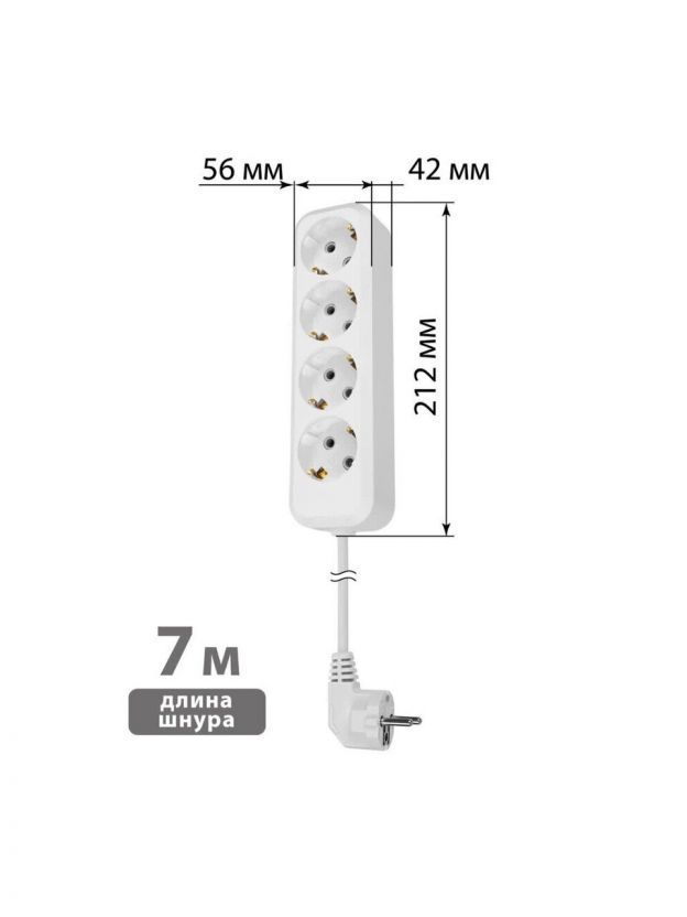 - длина 7 метров: позволяет подключать устройства на значительном расстоянии от розетки, обеспечивая удобство и свободу в размещении техники;