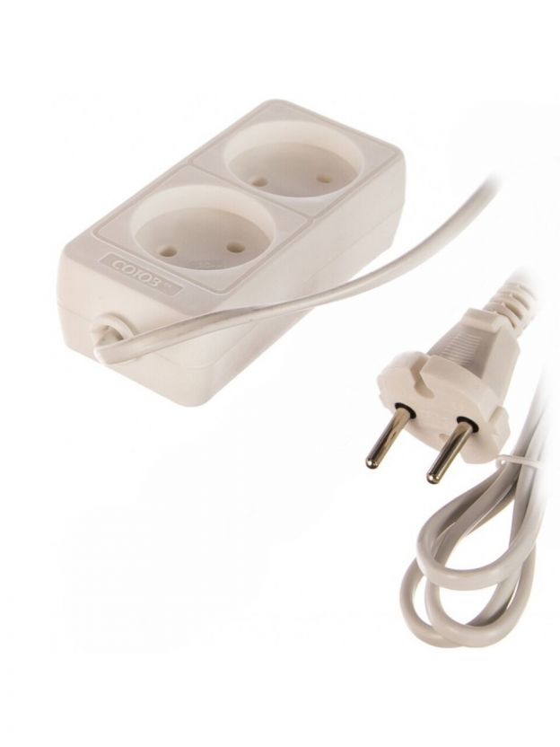 Удлинитель бытовой 2 гнезда, 1.5 м, ШВВП, без заземления, 1300 Вт, Союз, 481S-0201