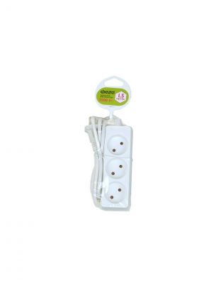 Удлинитель бытовой 3 гнезда, 1.5 м, 2х0.75 мм2, без заземления, со шторкой, пластик, белый, ФАZА, FE-03-150, 5000131