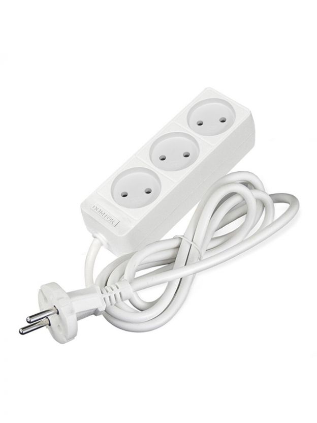 Удлинитель бытовой Domtok 2370 на 3 гнезда и 1.5 м — компактное решение для дома и дачи. Безопасность, надёжность, экономия пространства.