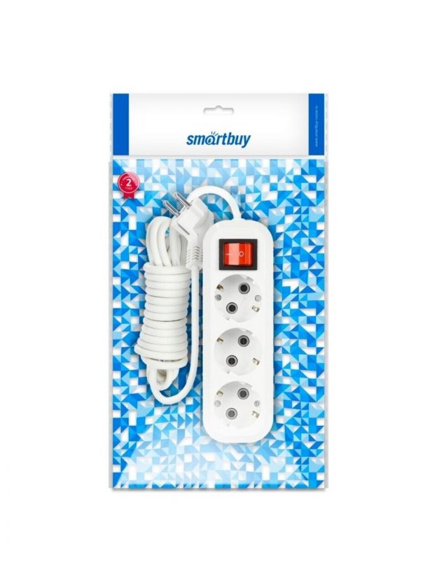 Удлинитель бытовой 3 гнезда, 3 м, ПВС, 3х1 мм2, с заземлением, выключатель, Smartbuy, SBE-16-3-03-ZS